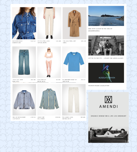 Tillsammans med en tidigare kollega och hans fru var jag med och skapade varumärket AMENDI. Jag skapade innehåll på hemsidan, nyhetsbrev, bildredigering men även inköp och design. Var även med och fotade imagebilder. Amendi var ett varumärke som försökte vara så hållbart som möjligt och prisades just för det av PLAZA interiör 2022. Vi hade även en egen butik på NK Göteborg. Här är lite av det jag skapade för AMENDI